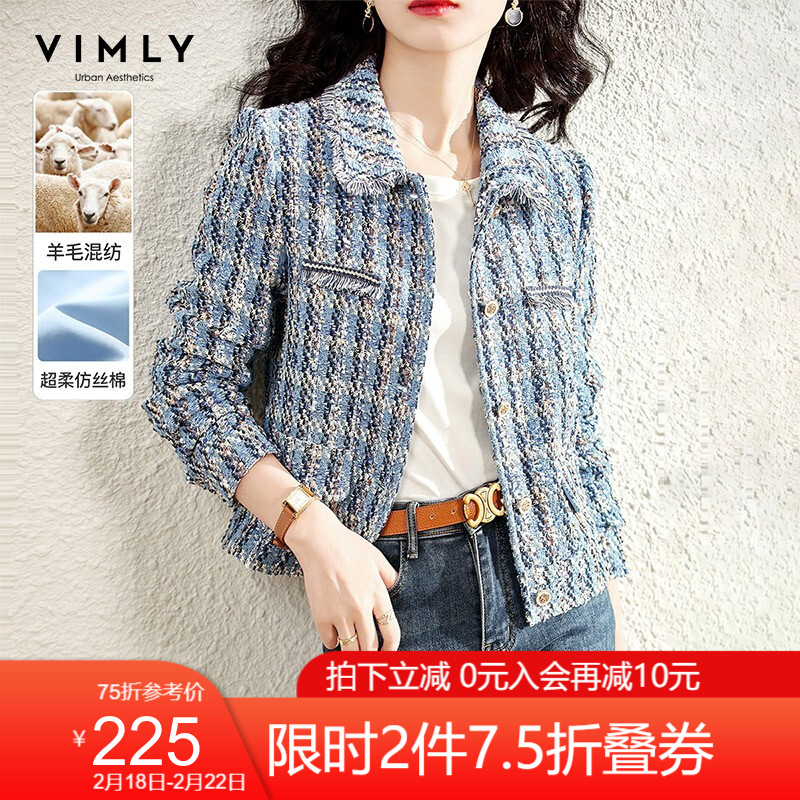 梵希蔓流苏小香外套女2022年春秋新款短款小个子时尚减龄翻领上衣 V0822 蓝色 S