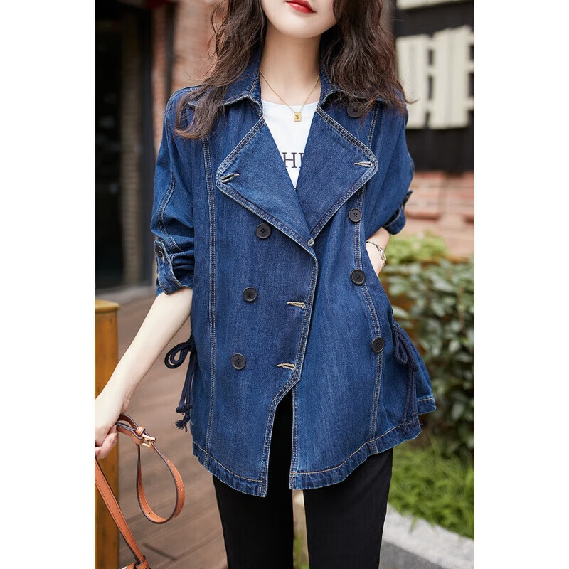 拉夏贝尔外套女新品2022年新款秋季两穿袖斗篷型宽松显瘦系带休闲牛仔外套秋装女 牛仔蓝 M