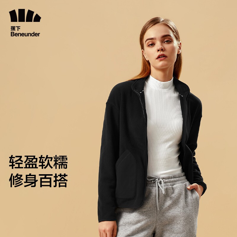 蕉下外套女春秋女装摇粒绒短外套抓绒衣户外 秋冬新款 眷暖摇粒绒外套 云碳黑 155/80A(S)