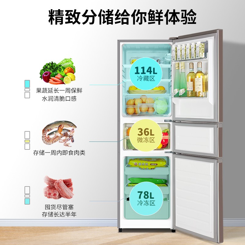 小巧纤细三门三温。匀冷微霜。两天不到1度电,99%抗菌更健康。节能降噪冰箱 精细分储 纤细不占地。 阅读全文 -