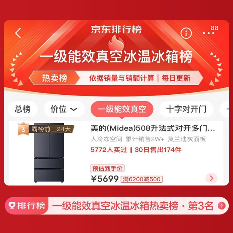 Midea 美的 BCD-508WTPZM(E) 法式多门冰箱 508L ,莫兰迪灰雅致外观,PTS+超磁电离19分钟快速净味,温湿可控,四门三温区,冷藏室308L,冷冻室175L,冰温室25L,双层直开式抽屉,变频压缩机+风机,支持WiFi控制,耗电量0.98度每天,一级能效,冷冻能力7.5kg/12h。 阅读全文 -