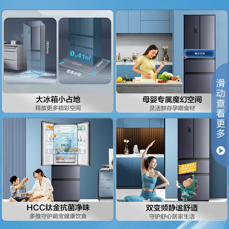 328升法式多门,矢量变频压缩机+变频离心风机,全温区抗菌。