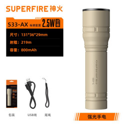 神火(SupFire) 强光手电筒小型迷你超长续航超亮手电筒充电户外巡逻防身 S33-AX(沙漠黄)