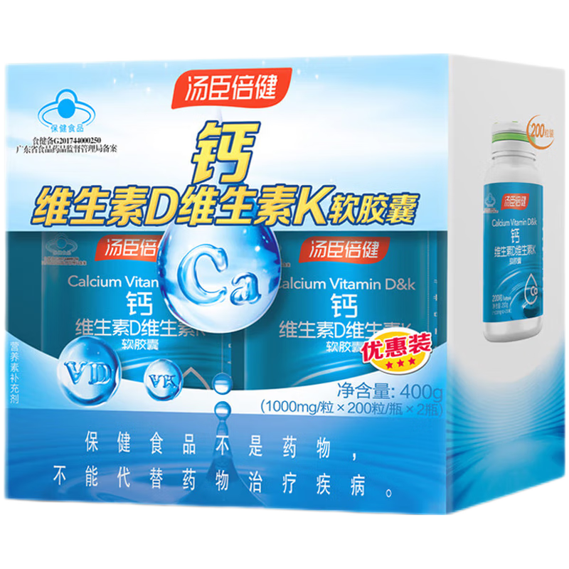 汤臣倍健液体钙 钙片中老年成人 维生素d维生素k软胶囊补钙片 男女孕妇哺乳期补钙钙片3 礼盒装400粒