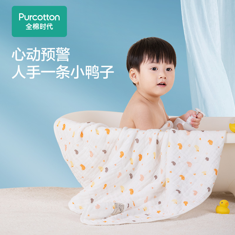 全棉时代 婴儿浴巾 新生儿童6层水洗纱布浴巾宝宝纯棉小鸭子115*115cm