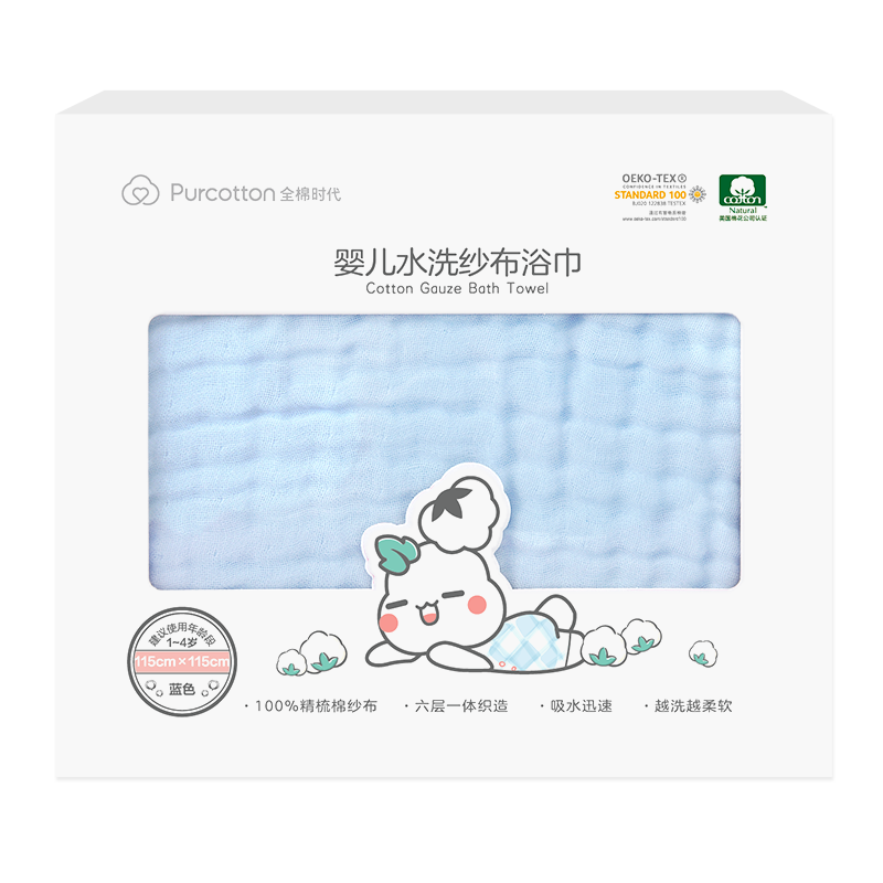 PurCotton 全棉时代 婴儿纱布浴巾 95*95cm采用优质精梳棉双层纱布面料,易洗易干,不易滋生细菌,精细做工,实用耐用。锁边精巧细密,整齐排线,不留线头。环保活性印染,色牢度高,实用更加安全。 阅读全文