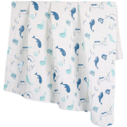十月结晶婴儿浴巾纯棉纱布初生新生儿超柔吸水宝宝儿童大毛巾方巾 6层多功能连帽抱被海洋精灵(95*95cm)