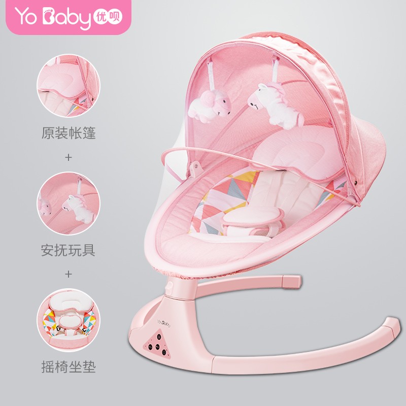 优呗(Yo Baby)婴儿电动摇摇椅 新生儿安抚摇椅 摇篮 智能蓝牙多功能 网红哄娃神器 绛樱粉 豪华礼盒款