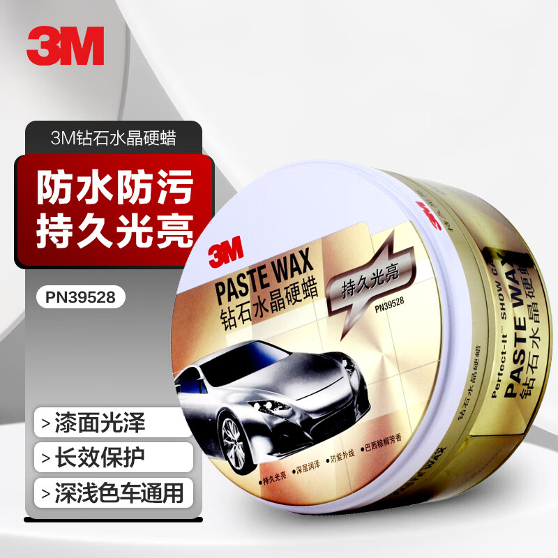 3M 汽车蜡 黑白色车蜡打蜡去污划痕汽车抛光上光含打蜡海绵钻石水晶硬蜡PN39528 280克