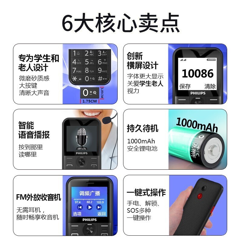 飞利浦(PHILIPS)E163K 陨石黑 移动联通2G 老人手机 双卡双待 超长待机 老年手机 儿童手机 学生备用功能机