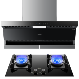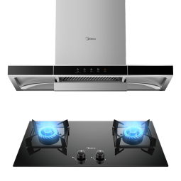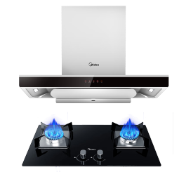 美的(Midea)抽油烟机燃气灶套装欧式顶吸家用烟灶套装22风量自动清洗智能化挥手脱排烟机T36+Q230B天然气套装