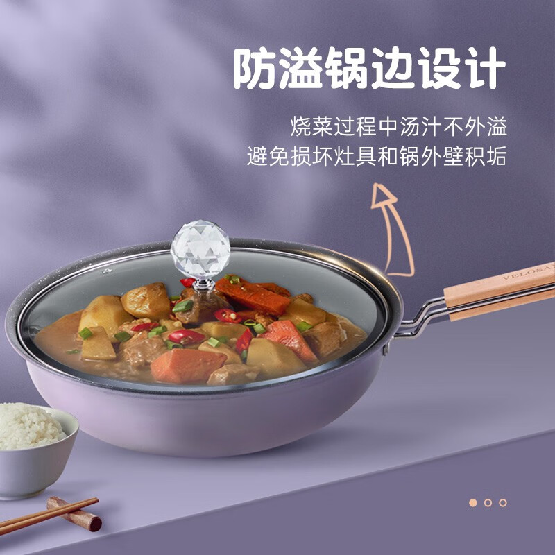 VELOSAN 锅具套装紫罗兰炒锅煎锅汤锅三件套厨具烹饪锅具电磁炉燃气灶通用 32cm炒锅+22cm煎锅+20cm汤锅【礼盒装】