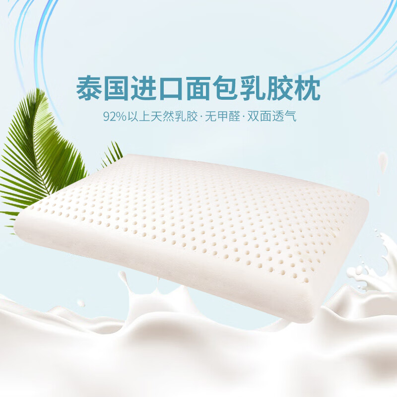 京东京造 梦享系列 泰国进口天然乳胶枕头 92%天然乳胶含量 面包款 橡胶枕头