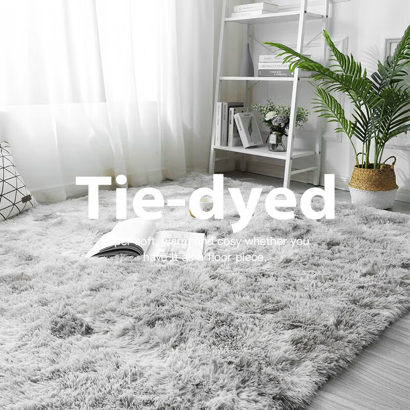 FOOJO地毯 缎染扎染丝绒地毯 客厅沙发茶几地毯卧室大地毯 140*200cm渐变灰