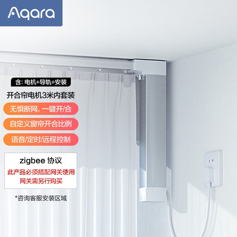 Aqara 绿米智能窗帘电机(Zigbee版)电动窗帘轨道 接入米家APP/Homekit需搭配网关 【单轨套装丨不含测量】窗帘电机+3米内直轨+安装
