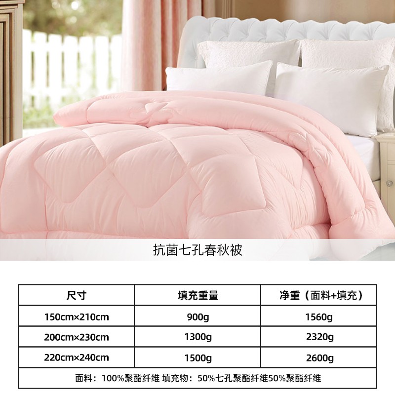 水星家纺 被子抗菌七孔纤维被春秋被四季通用加厚保暖冬被被芯学生宿舍床上用品 【粉色】四季被(升级抗菌工艺) 200x230cm(适配1.5米床套件)