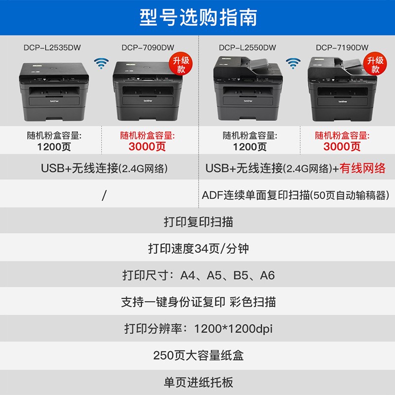 兄弟(brother) DCP-L2535DW黑白无线激光打印机复印扫描手机wifi自动双面 L2550DW(无线有线网络)