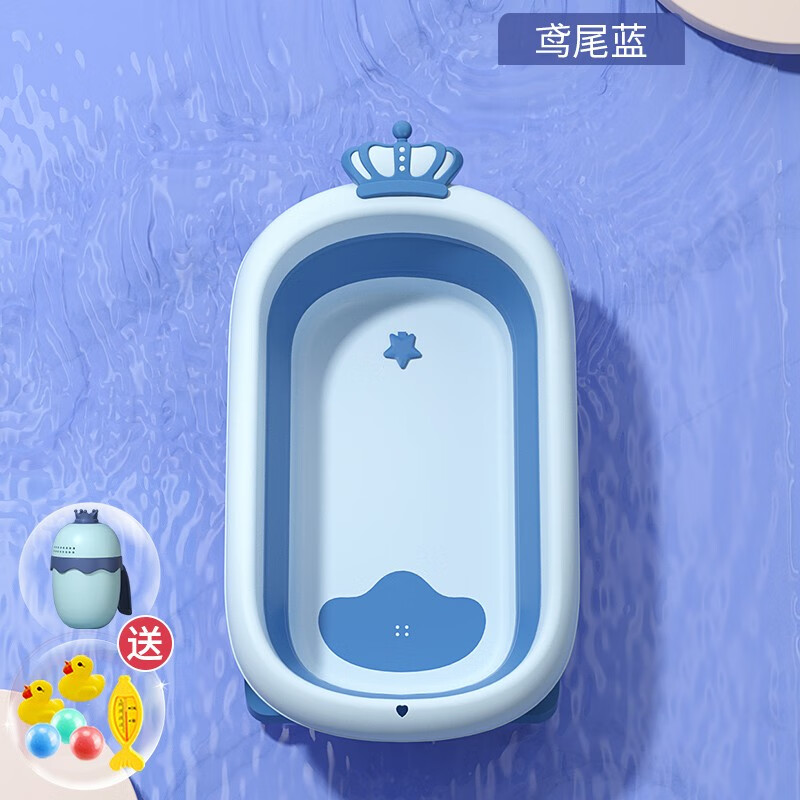 英氏婴儿洗澡盆浴盆宝宝可折叠幼儿坐躺浴桶小孩家用新生儿童用品 防霉【深海蓝】单盆可折叠-皇冠浴盆