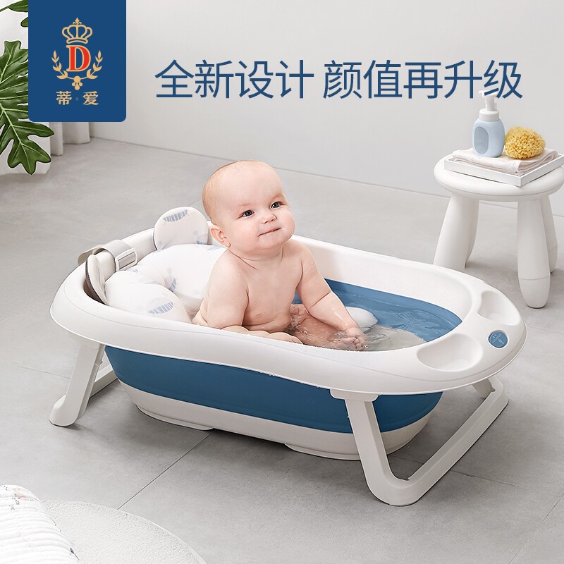 蒂爱新生儿婴儿洗澡盆新生宝宝折叠浴盆儿童沐浴洗澡桶家用神器用品大号 浴盆-蒂爱蓝(赠水温计)