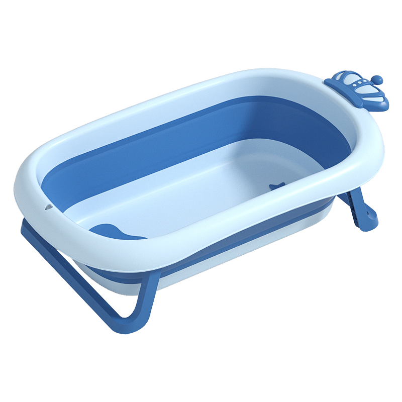 英氏婴儿洗澡盆浴盆宝宝可折叠幼儿坐躺浴桶小孩家用新生儿童用品 【深海蓝】可折叠-皇冠浴盆