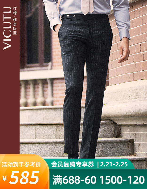 威可多VICUTU商场同款男士西服裤男纯羊毛修身商务轻正装西裤男VRS19321969 黑色条纹 185/96A