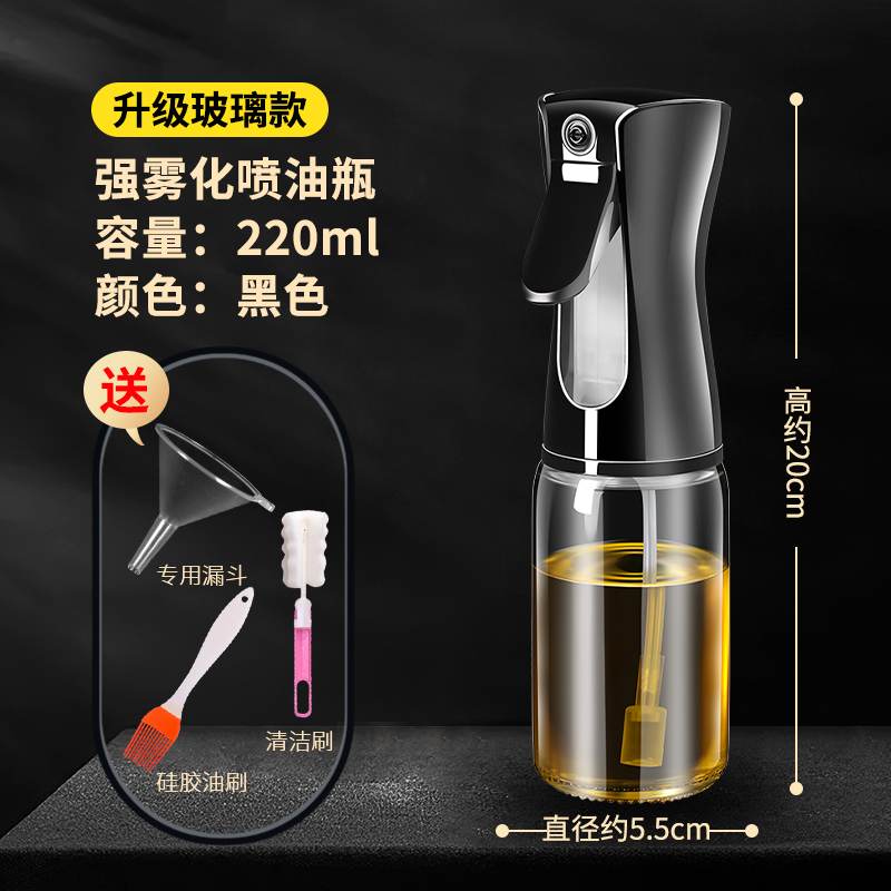 艾美诺(AMINNO)喷油瓶烧烤烘焙雾化喷壶橄榄油食用油控油减脂家用不挂油厨房空气炸锅专用按压喷油壶 黑色玻璃喷油壶