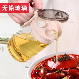 茶花大号带盖玻璃油壶防漏油罐醋壶 酱油瓶调味瓶厨房用品 450ml草绿色(中号1个)