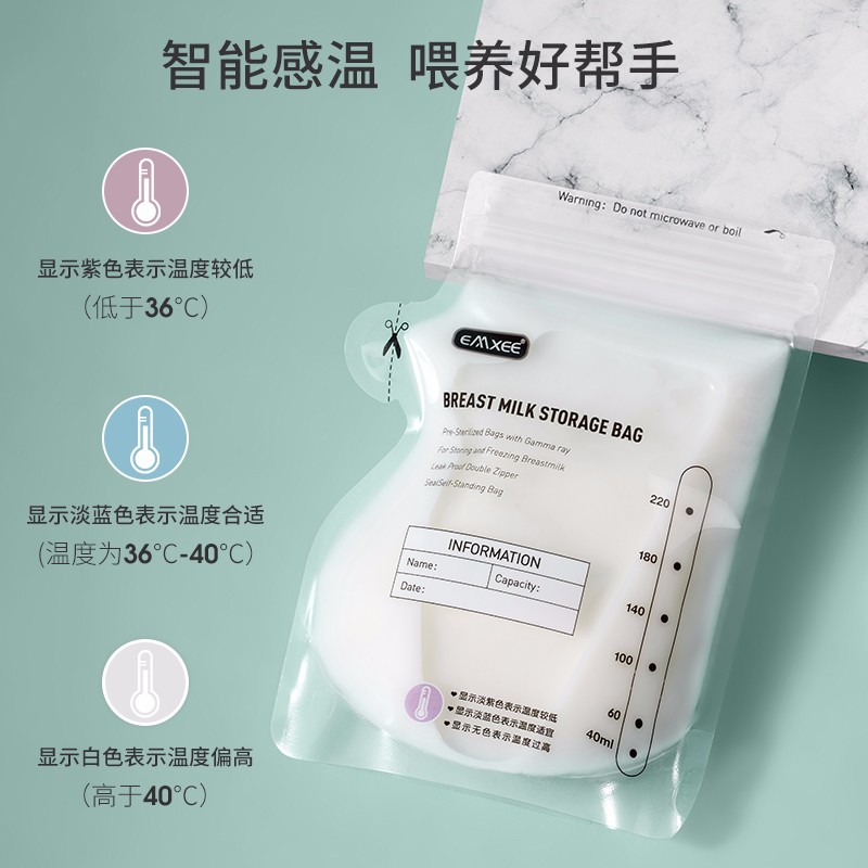 嫚熙(EMXEE) 储奶袋母乳保鲜袋一次性存奶袋储存袋加厚防漏可冷冻 50枚【220ml】 储奶袋