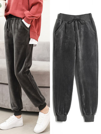 金丝绒运动裤女秋冬季加绒加厚外穿棉裤宽松显瘦休闲裤束脚卫裤子 35.91元