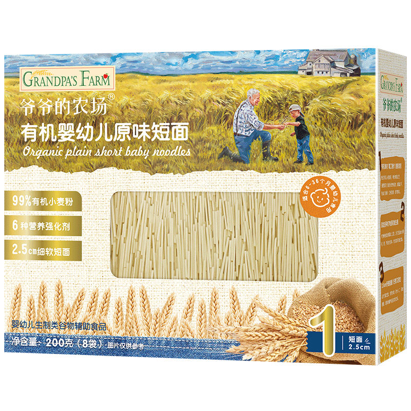 爷爷的农场宝宝有机面条婴儿辅食儿童短面婴幼儿营养无盐高铁原味短面200g