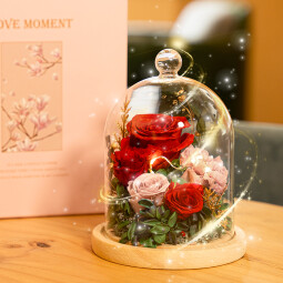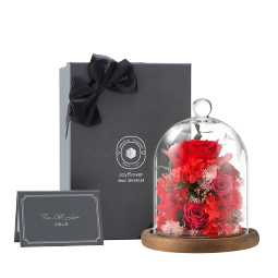 JoyFlower永生花玻璃罩礼盒玫瑰花母亲节520情人节生日礼物送女友老婆闺蜜