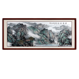 尚得堂 手绘国画山水画客厅装饰画办公室挂画风景画靠山图水墨源远流长 圆角棕色 装裱218*118