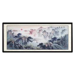 尚得堂名家手绘国画刘磊山水画旭日东升客厅背景墙装饰画办公室字画 沙比利实木框-圆角黑色-发顺丰 装裱218*88