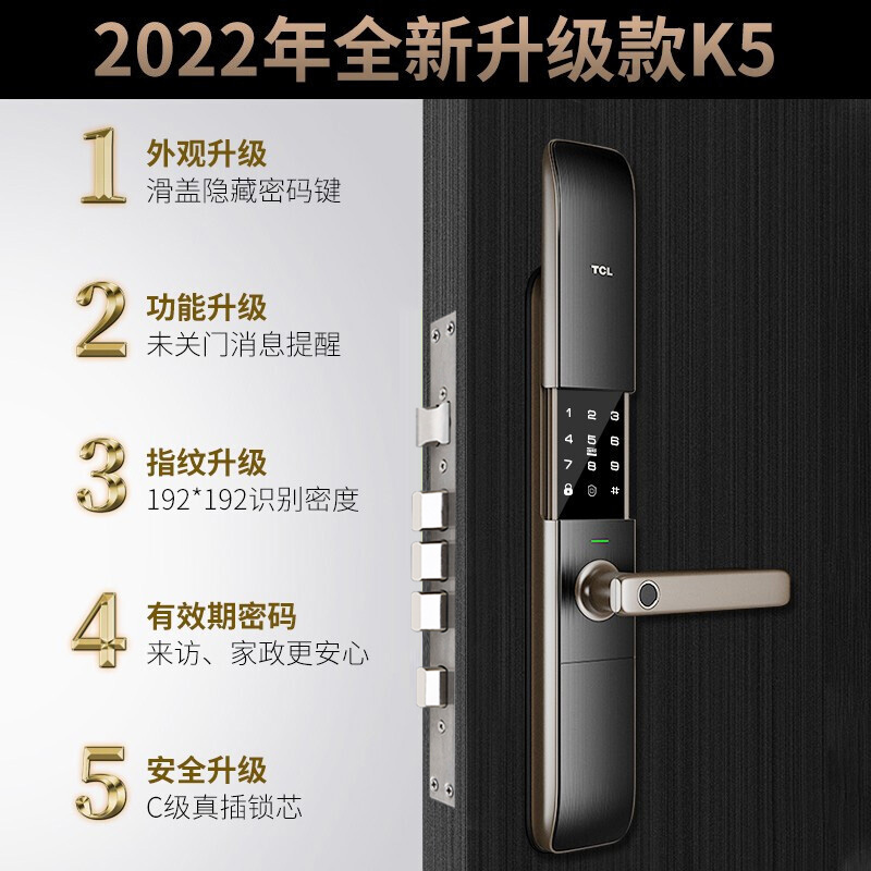 TCL 指纹锁智能锁家用防盗门密码锁滑盖升级电子锁APP远程智控未关门提醒电入户门智能门锁K5 新款K5时尚滑盖款设计+轻奢典雅【活动】