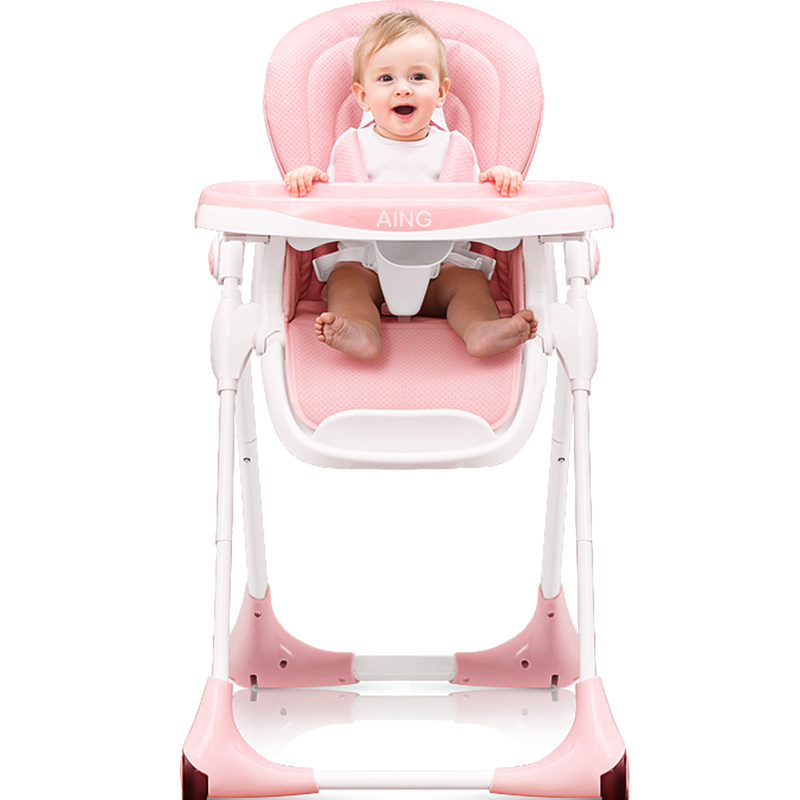 爱音(Aing)儿童餐椅 婴幼儿餐椅 可坐可躺多功能宝宝吃饭餐桌 可折叠便携式座椅可调节 C018樱花粉