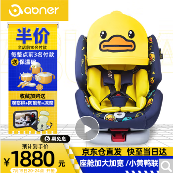 阿布纳(Abner)儿童安全座椅汽车用0-12岁isofix硬接口 小黄鸭限量版 满1500减360