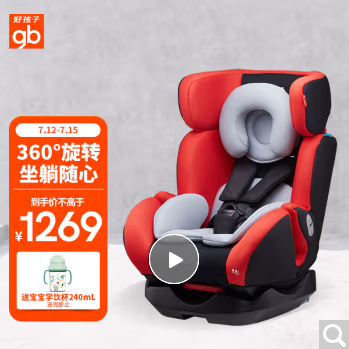 gb好孩子 高速儿童宝宝 汽车安全座椅 ISOFIX接口 360度旋转 双向安装 CS772-A002 红灰色(0-7岁) 满899元减100元