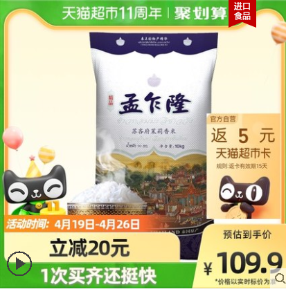 孟乍隆大米多少钱?天猫超市目前售价99.9元,下单2件,参加满199立减60元活动,使用5元优惠券,叠加全品140-10元券,合计返卡60元,vip返卡后实付58.56包邮,实付58.56元包邮,折合29.28元/件~ 阅读全文