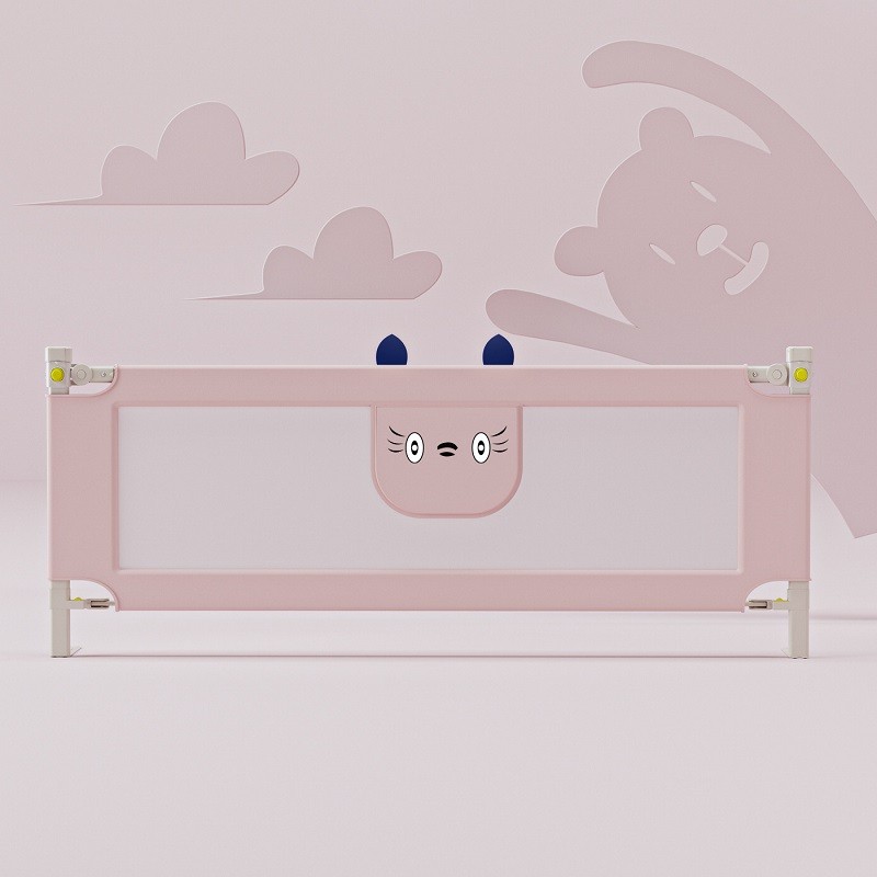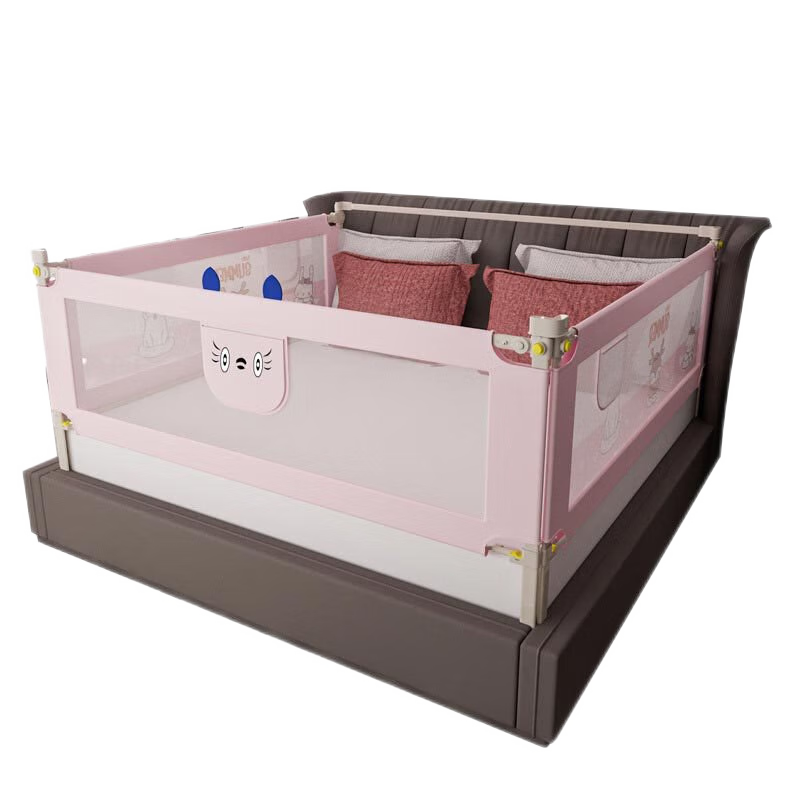 婴儿床护栏床围栏婴儿宝宝防摔防护栏儿童床上挡板床边防掉安全床护栏通用围栏 粉色机器猫无缝压床式+上下横杆可分离进出无障碍 1.8米单片