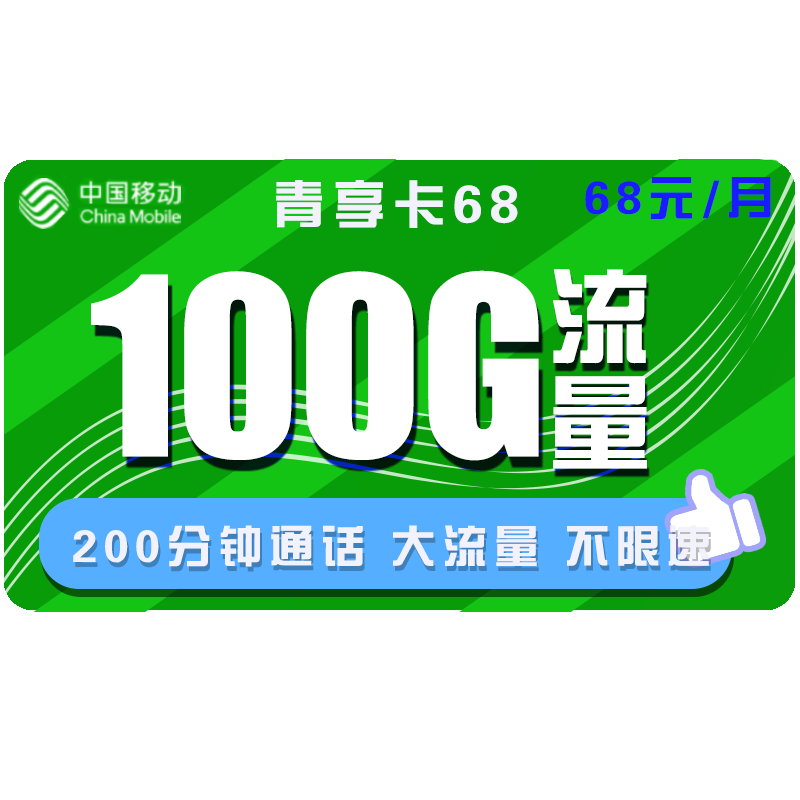 中国移动 手机卡流量卡上网卡高速校园卡包年流量卡不限速卡青花新花卡4G电话卡全国套餐 移动青月卡38包60G全国流量+200分钟通话