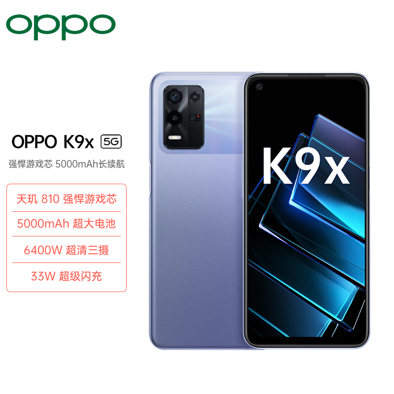 OPPO K9x 8+256GB 银紫超梦 天玑810 5000mAh长续航 33W快充 90Hz电竞屏 6400万三摄 拍照5G手机oppok9x