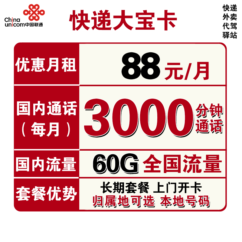 本卡可选归属地,当地联通上门开卡,本地号码。