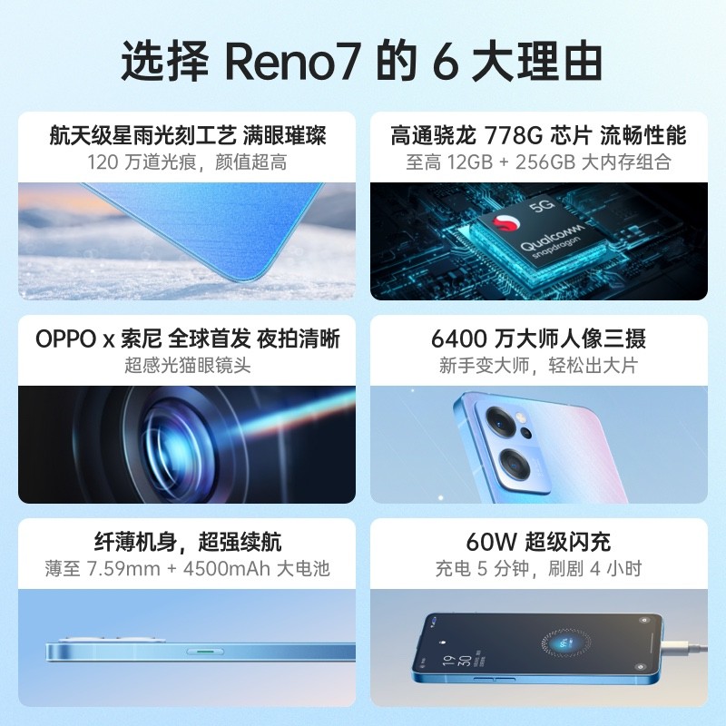 OPPO Reno7 5G新品手机 星雨光刻工艺 前置索尼IMX7 高通骁龙778G游戏智能拍照手机 星雨心愿 8GB+256GB