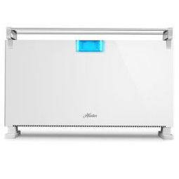 亨特(HUNTER)这款型号为HTN-B20E的电暖气,属于对流式电暖器,冷气通过下方进气口进入,被加热上升后从上方出来,通过反复循环让室温提升。热循环的好处在于,不易蒸发空气中的水分子,吹多久都不干燥,而且静音无声。 由于铝合金材质打造的片式加热体,相比常见的电热油汀体积更小、重量更轻,转移收纳简单轻松。本款产品机身仅6厘米厚度,超薄机身有效节省空间。 产品加热功率为0W,支持0W、0W双档调节,搭配恒温芯片,有效保证10-20㎡居室内温度的恒定。机身正面配备液晶显示屏,方便操控。此外,还标配遥控器(最远支持6米遥控),一键设定时、调功率,简单方便高效。 产品达到了IPX4级别防水的标准,可实现居浴两用,保证使用安全。此外,还具备有倾倒断电、童锁保护等功能,用户对其安全性无需担心。