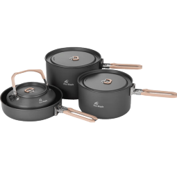 Naturehike 挪客户外 便携组合套锅餐具 ,内含大锅*1、小锅*1、煎锅*1、配件为小碗×3、饭勺×1、汤勺×1、海绵×1,轻量健康铝材,健康不粘涂层,耐腐蚀、耐高温、耐磨,锅体工艺氧化,可放心使用。 阅读全文 -