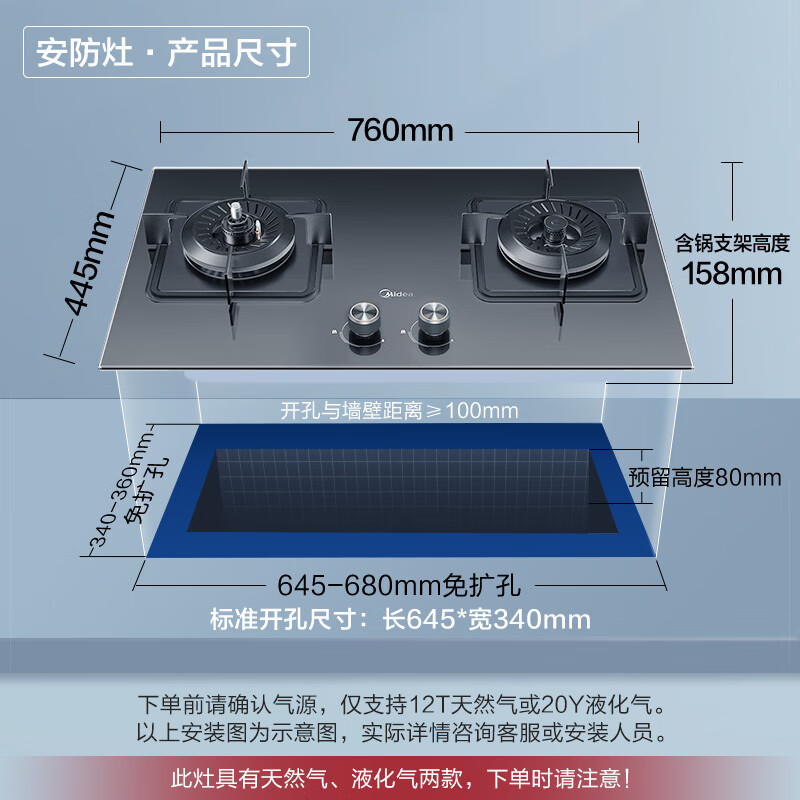美的(Midea)燃气灶天然气 双灶具 家用防干烧5.0kW猛火灶台嵌两用 安防灶 以旧换新 美颐享Q36S