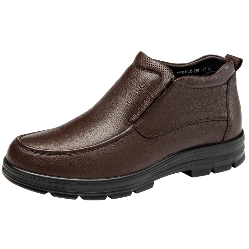 奥康官方男鞋 秋冬 圆头舒适套脚简约高帮棉鞋保暖舒适简约男靴男皮鞋 棕色006 41