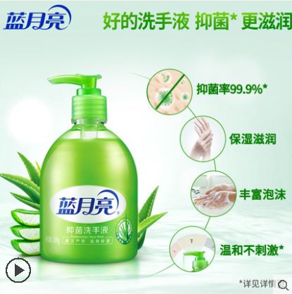 蓝月亮洗手液芦荟洗手液清爽抑菌 滋润清洁家用抑菌清洁300g*1瓶 7.40 秒杀