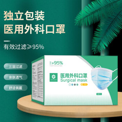 圣泉 一次性医用外科口罩50个独立包装医用口罩成人挂耳式非无菌防细菌防飞沫传播防隔离病菌 1盒50只 19.9元