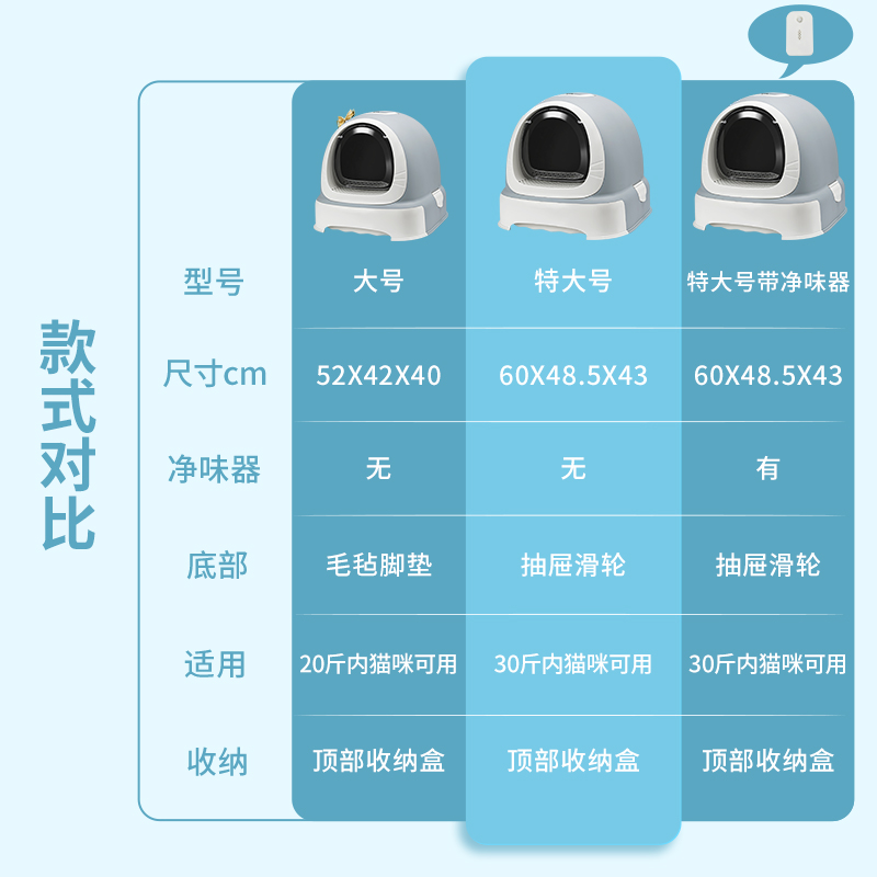 超大内仓,可供20斤猫咪轻松安全如厕,35dB静音铲屎,智能快速,无臭养猫。
